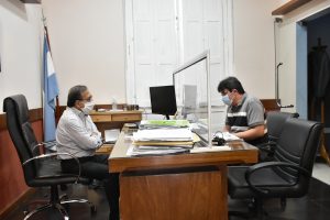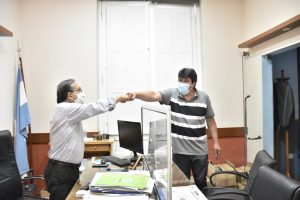 El ministro de Salud Pública de la Provincia, Ricardo Cardozo, recibió hoy en su despacho al médico terapista correntino Gabriel Cuenca, un profesional que se recibió en la Universidad Nacional del Nordeste (UNNE) y que se desempeña en la provincia de Santa Cruz. Está de vacaciones y se ofreció para trabajar en el hospital de campaña Escuela Hogar.