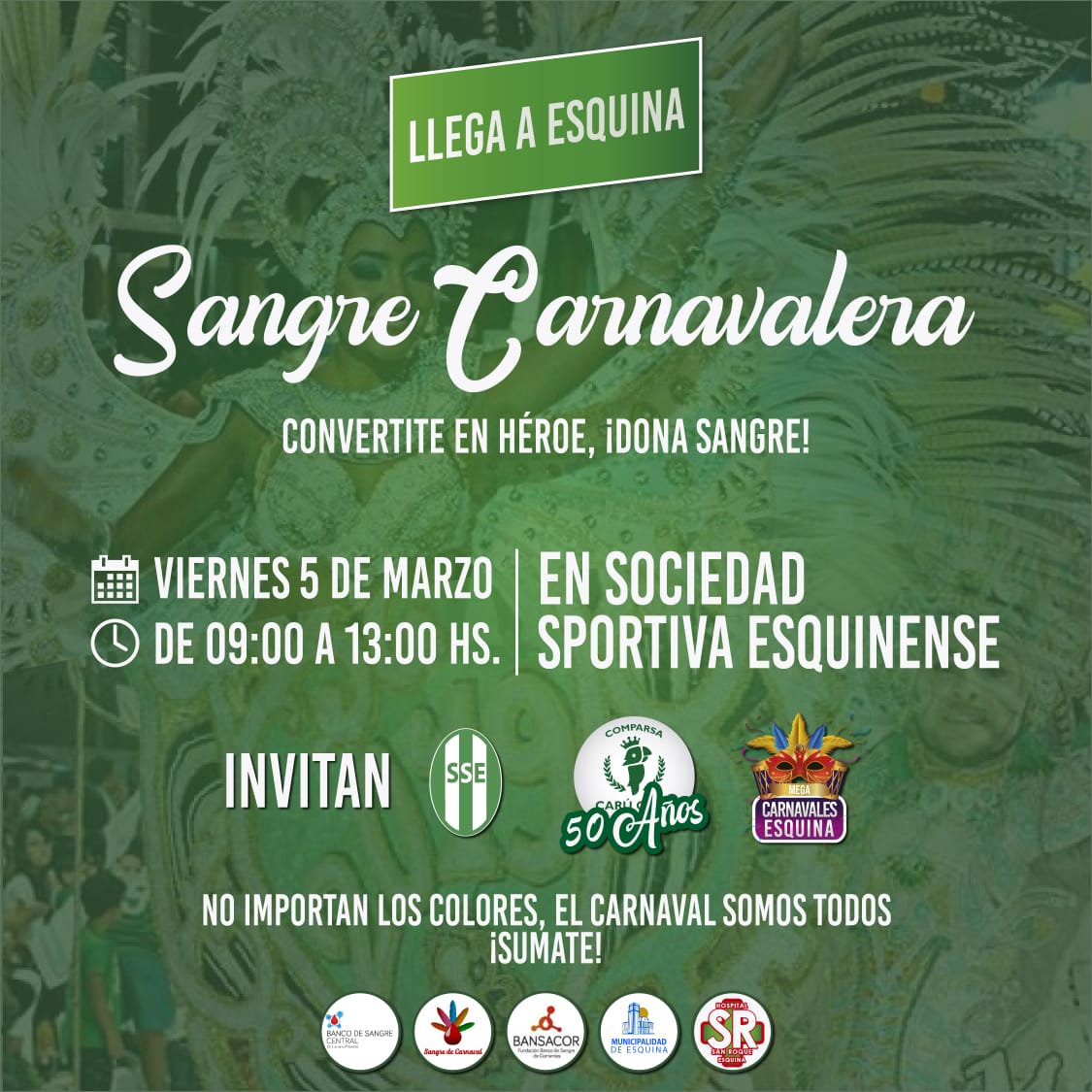 Se trata de una propuesta solidaria impulsada por el Banco de Sangre Central de Corrientes junto a las comparsas y agrupaciones musicales del Carnaval para promover a donación de sangre. Vale destacar que en su jornada inaugural logró más de 50 hemodonaciones.