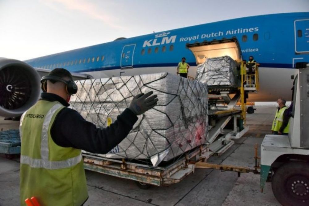 Las vacunas llegaron hoy a las 6.22 hs al aeropuerto internacional en el vuelo regular de pasajeros KL701, de la compañía KLM, proveniente de Ámsterdam.
