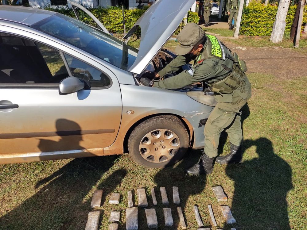 La droga estaba distribuida en 305 paquetes ocultos en el interior de distintos sectores del rodado (zócalo, base asiento trasero, freno de mano y torpedo). Hay dos detenidos.