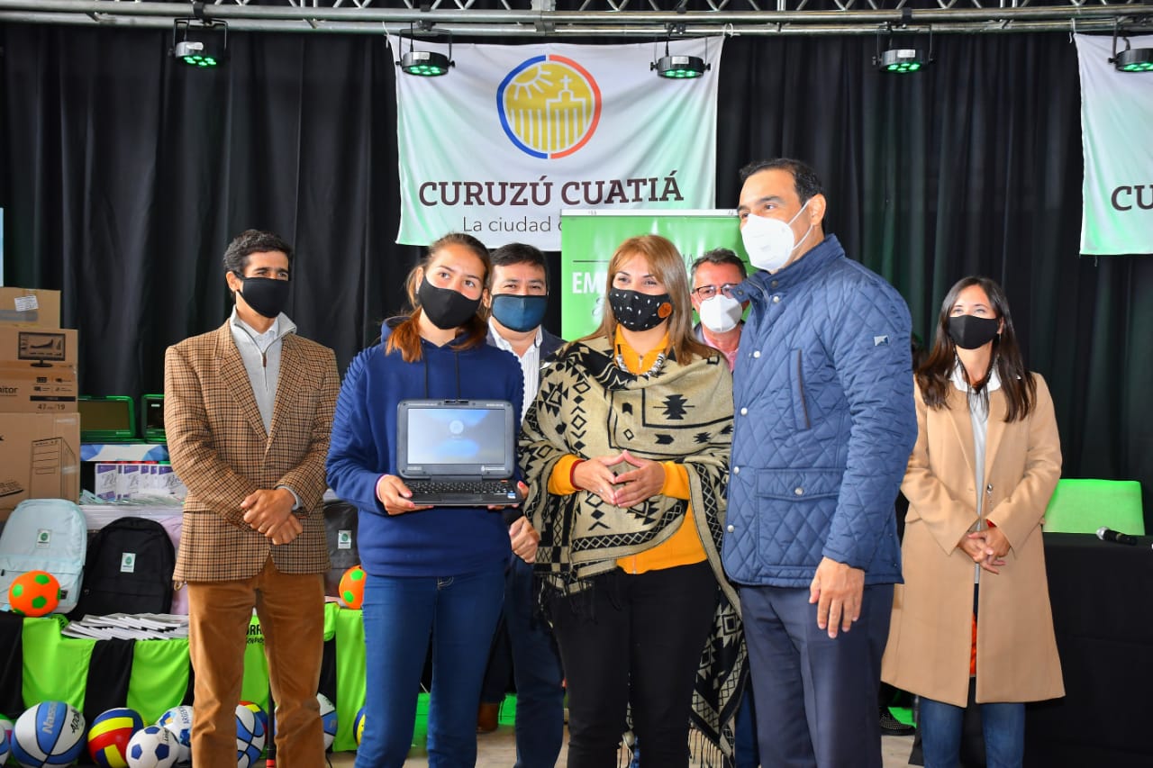 Luego, las autoridades se dirigieron al Club recreativo y deportivo Curuzú Cuatiá, donde las partes firmaron un convenio de decisión gratuita de material tecnológico, encuadrado en el programa nacional “Seguimos educando”, por lo que se hizo entrega simbólica de 110 netbook, que fueron destinadas a alumnos que cursan el segundo año del secundario.