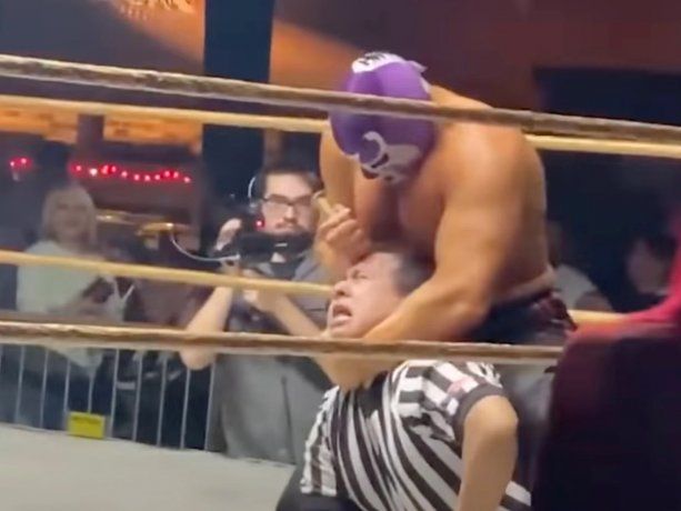 Pocos minutos después, se ve al referee sangrando e inconsciente. Una luchadora que presenciaba los hechos intervino para evitar una desgracia mayor.