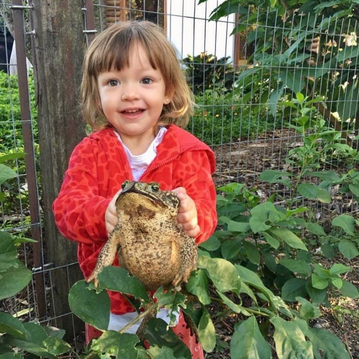 En las últimas horas se viralizó un vídeo que publicó su madre en redes sociales y en dónde se ve a la niña de 3 años cargando a dos anfibios de gran tamaño sin ningún temor.