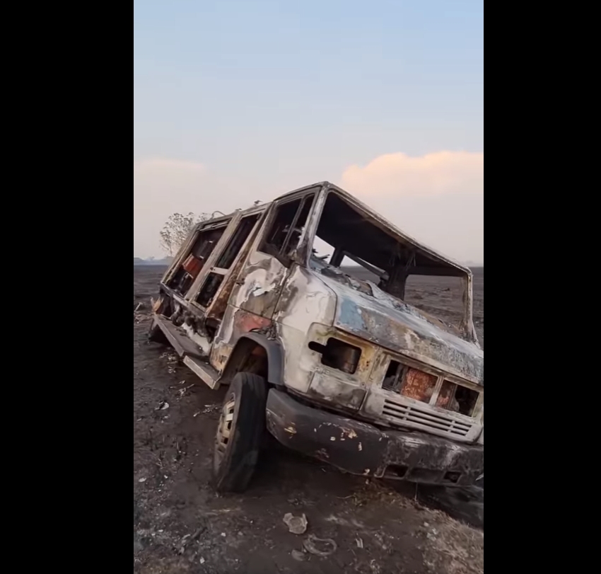 Por el mismo viento y la velocidad con que el fuego tomaba todo, las llamas llegaron hasta la autobomba