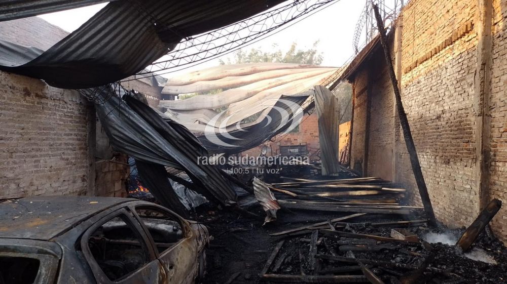 Dentro del galpón, se veía un automóvil totalmente consumido por el fuego, una camioneta marca Peugeot y un camión con daños graves, debido al calor de las llamas. Asimismo, maquinaria, maderas y las chapas seguían ardiendo en la mañana del miércoles.