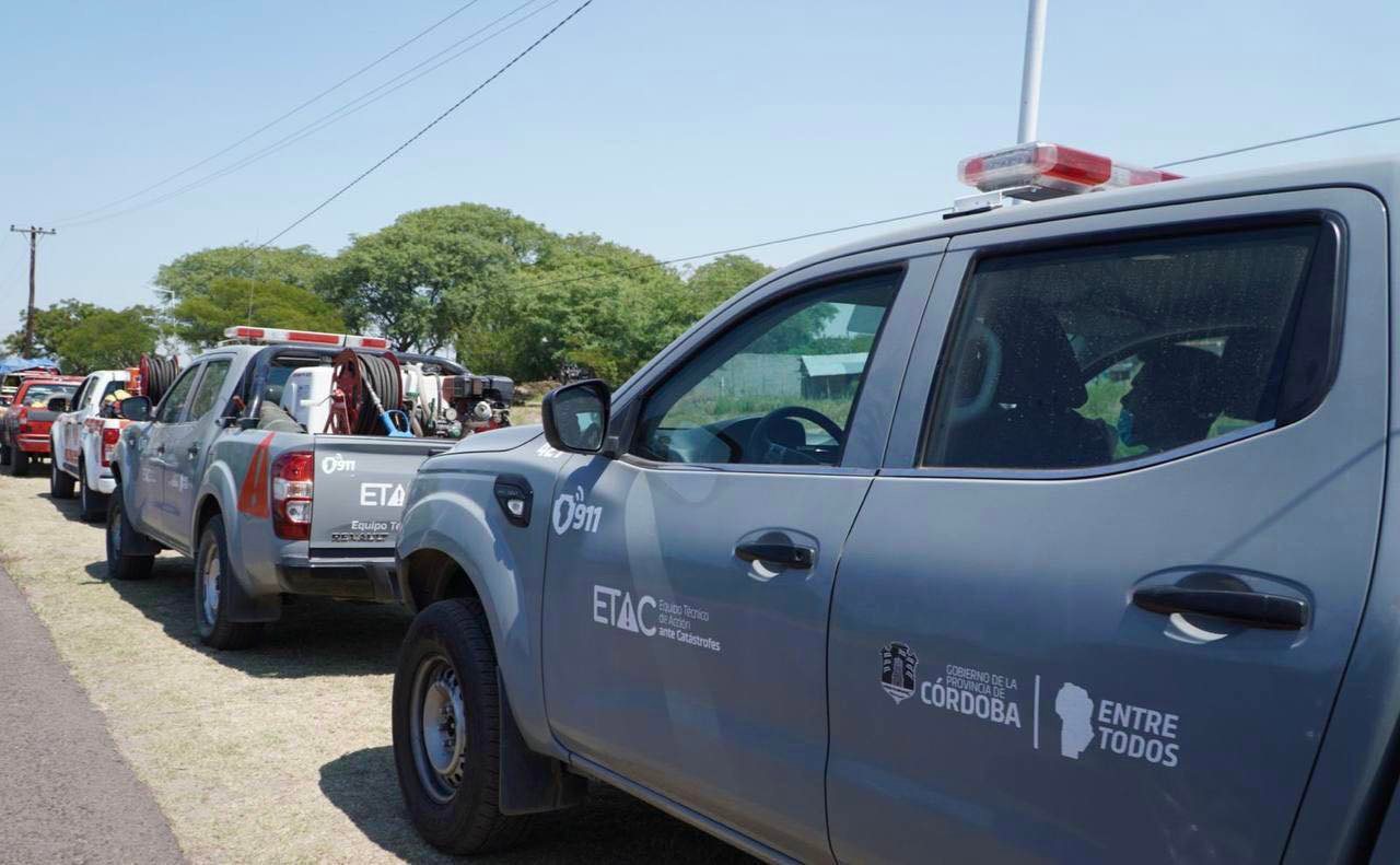 La comitiva cordobesa llevó además recursos logísticos como kits forestales, camiones cisterna, drone, carpas para campamento entre otros.