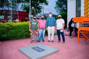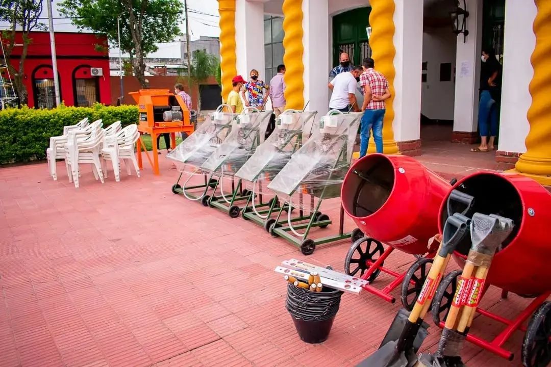 Además, hicieron entrega de una máquina bloqueadora de seis moldes con motor y hormigoneras al área de Defensa Civil para la realización de bloques de cemento sociales.