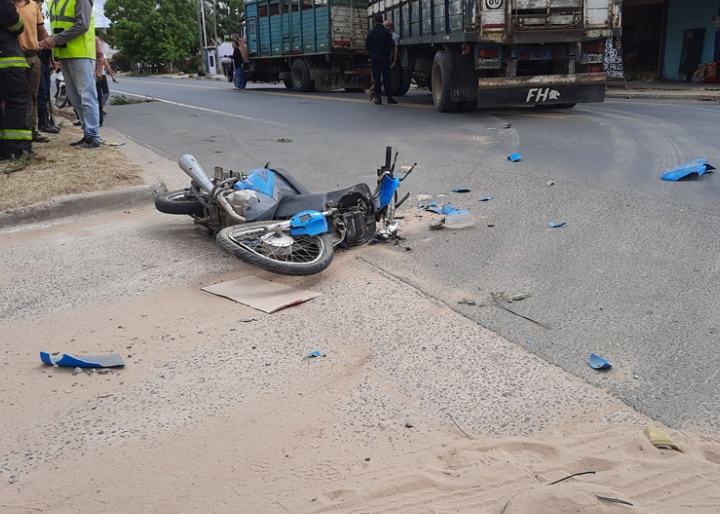 Un motociclista resultó herido tras chocar contra un camión Mercedes Benz.