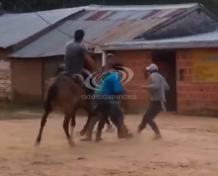 El incidente se desarrolló a pocos metros de una escuela pública y jardín de infantes. El cronista de Sudamericana Darío Miño confirmó la detención de los cuatro sujetos. El móvil de la pelea habría sido “por un caballo”.