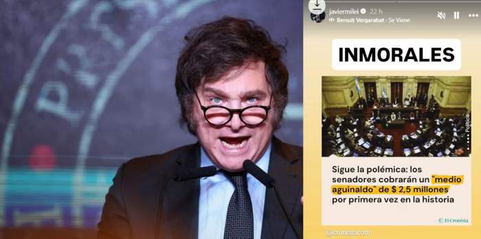 Javier Milei recurrió a su cuenta de Instagram para expresar su descontento sobre el medio aguinaldo que recibirán los senadores, quienes sumarán a su cuantiosa “dieta” el pago de la “dieta trece” dispuesta en enero de este año.