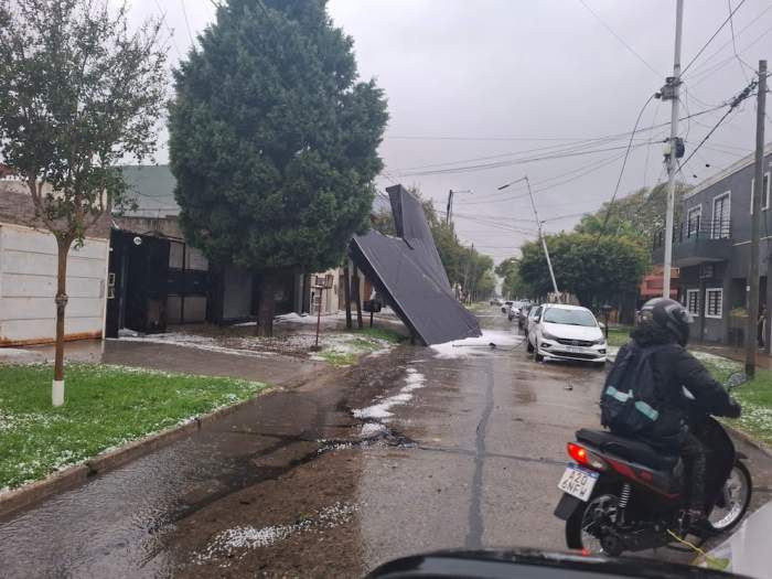 Las imágenes compartidas por los vecinos en redes sociales muestran calles transformadas en ríos, techos golpeados por piedras de hielo y autos atrapados por el agua.