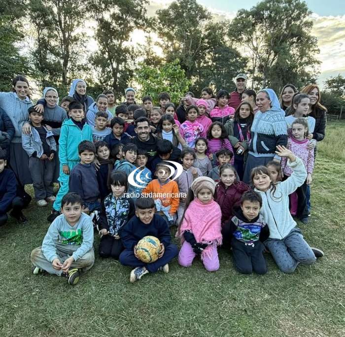“Quiero decirles que estoy muy feliz de estar acá con ustedes, de poder compartir una merienda, de poder estar jugando al fútbol con ustedes. Muchos no me vieron jugar porque son todos muy chiquitos y la verdad que los más grandes por ahí sí ya me vieron jugar, pero pregúntenle también a los más grandes que he viajado mucho por el mundo, he viajado muchísimo por el mundo, pero la persona hoy me reconoce por solamente una cosa, porque he ganado muchos campeonatos y todo, pero me reconocen por una sola cosa, que soy buena persona”, expresó el exjugador de Boca Juniors quien llegó a la provincia junto a su esposa Vanesa Mansilla.
