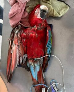 Los veterinarios que atendieron al guacamayo determinaron que la herida había sido provocada por un proyectil mientras volaba, lo que descarta una caída accidental o lesión natural. Las circunstancias llevaron a sospechar que fue alcanzado por un “gomerazo”, según indicó Marisi López, integrante de Rewilding Argentina.
