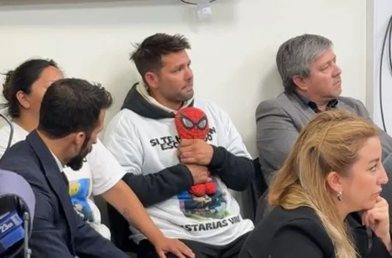 Cuando el papá de Angel vio que en el mismo salón estaban su ex mujer y el padrastro de su hijo no pudo contenerse. Sobre su pecho llevaba un muñeco del Hombre Araña que era el preferido del nene. Era, que se entienda, como si estuviera allí con él. “¡Asesinos! ¡Asesinos son! ¡Mataron a mi hijo! ¡A mi hijo mataron! Asesinos de mierda! ¡Hijos de puta! ¡Van a pagar con perpetua los dos!”. Allí los sacaron, y hasta pareció que las fuerzas policiales les dieron “unos segunditos” para desahogarse. Tremenda la imagen en un caso cada vez más desgarrador.