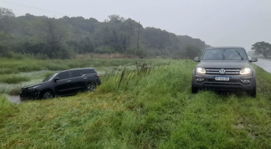 Tras el impacto, el vehículo de menor porte perdió el control y quedó a escasos metros de un canal de desagüe, mientras que el rodado del funcionario terminó varios metros dentro de la banquina, entre los pastizales.